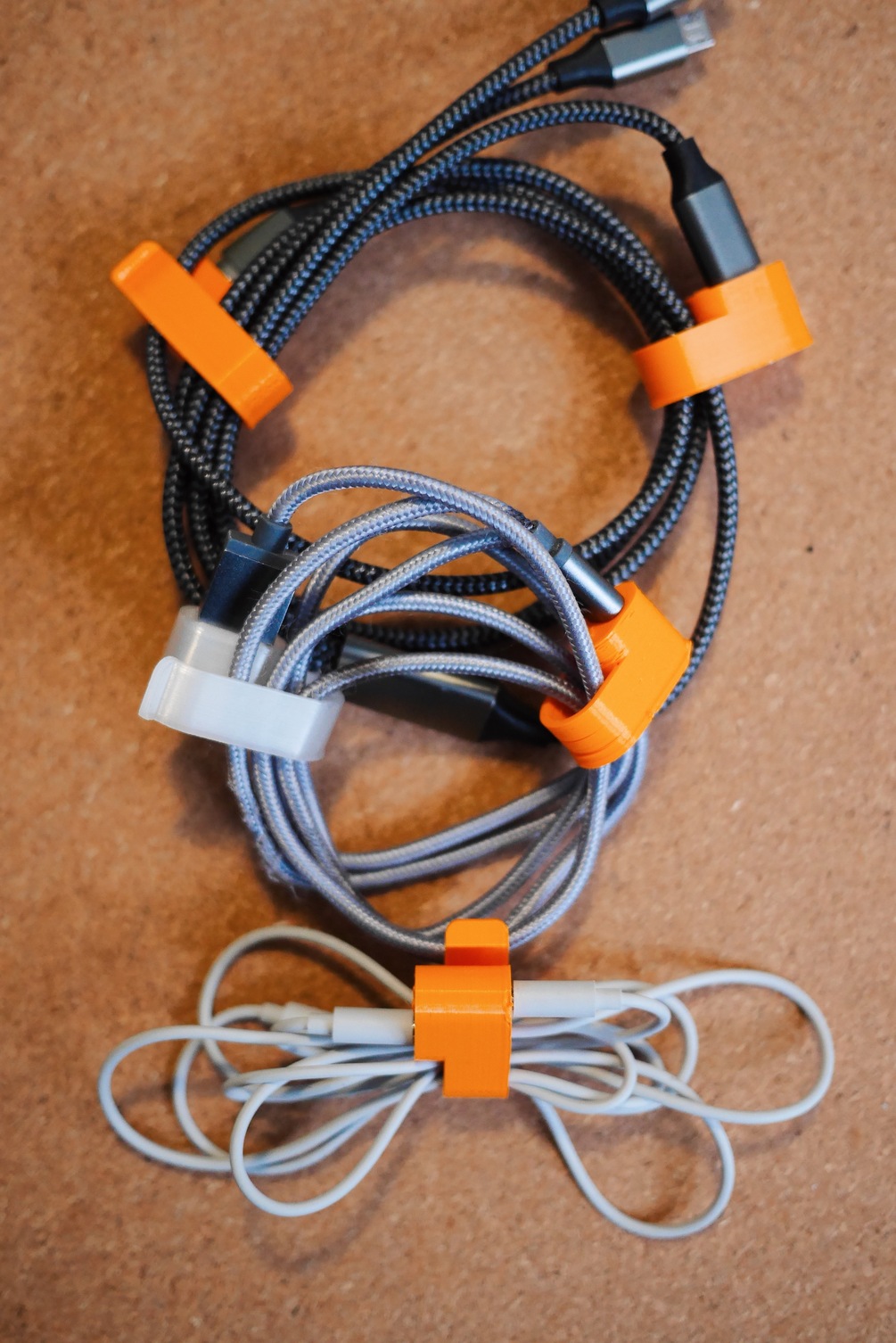 Collection of 5 printable cable holders to mix and match: -USB A -USB C -Lightning -Audio Jack 6.3 -Mini Jack 3.5
